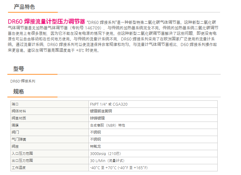 DRASTAR 气体调节器DR60-Co2焊接系列
