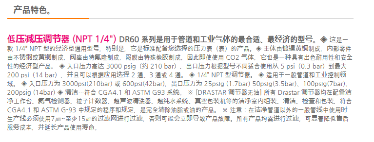DRASTAR 低压减压调节器 DR60 系列